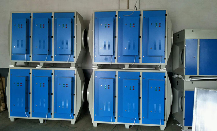 等离子净化设备内部装有独特的碰吸单元,截留去除废气中的颗粒物质,废气收集系统收集的多元素气体经过等离子活性氧净化装置,在高压等离子电场的作用下,电离初始态氧将其中的废气离子进行电离荷电净化,带电的微小离子(尘埃粒子)被吸附单元所收集并流入和沉积到气体处理装置的储尘箱内,气体内的有害气体被电场内所产生的臭氧所杀菌,并去除了异味,有害气体被除掉,达到废气处理的目的。