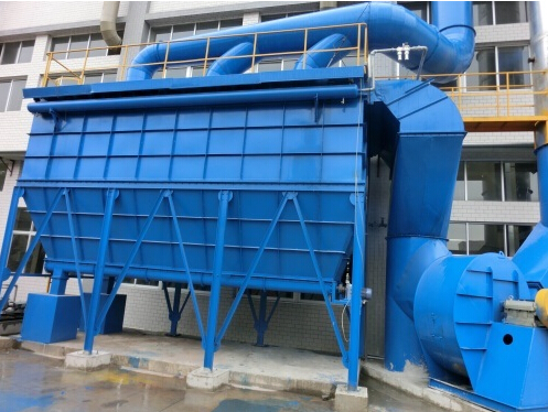 工作时,含尘气体由车间除尘设备的进风道进入灰斗,粗尘粒直接落入灰斗底部,细尘粒随气流转折向上进入中、下箱体,粉尘积附在滤袋外表面,过滤后的气体进入上箱体至净气集合管-排风道,经排风机排至大气。清灰过程是先切断该室的净气出口风道,使该室的布袋处于无气流通过的状态(分室停风清灰),然后开启脉冲阀用压缩空气进行脉冲喷吹清灰,切断阀关闭时间足以保证在喷吹后从滤袋上剥离的粉尘沉降至灰斗,避免了粉尘在脱离滤袋表面后又随气流附集到相邻滤袋表面的现象,使滤袋清灰彻底,并由可编程序控制仪对排气阀、脉冲阀及卸灰阀等进行全自动控制,由此使积附在滤袋上的粉尘周期地脉冲喷吹清灰,使净化气体正常通过,保证除尘系统运行。当含尘气体由进风口进入,经过灰斗时,气体中部分大颗粒粉尘受惯性力和重力作用被分离出来,直接落入灰斗底部。含尘气体通过灰斗后进入中箱体的滤袋过滤区,气体穿过滤袋,粉尘被阻留在滤袋外表面,净化后的气体经滤袋口进入上箱体后,再由出风口排出。另外,随着时间的增加而积附在滤袋上的粉尘越来越多,增加滤袋阻力,致使处理风量逐渐减少,为正常工作,一定要控制阻力在一定范围内(140--170毫米水柱)。