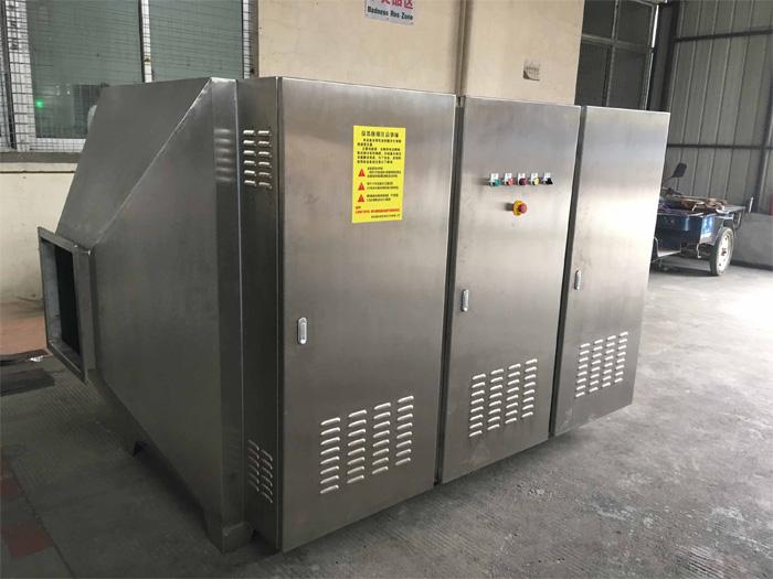 UV光解设备是利用特制的高能高臭氧UV紫外线光束照射废气,裂解工业废气如:氨、三甲胺、硫化氢、甲硫氢、甲硫醇、甲硫醚、乙酸丁酯、乙酸乙酯、二甲二硫、二硫化碳和苯乙烯,硫化物H2S、VOC类,苯、甲苯、二甲苯的分子链结构,使有机或无机高分子恶臭化合物分子链,在高能紫外线光束照射下,降解转变成低分子化合物,如CO2、H2O等。利用高能高臭氧UV紫外线光束分解空气中的氧分子产生游离氧,即活性氧,因游离氧所携正负电子不平衡所以需与氧分子结合,进而产生臭氧。 UV+O2→O-+O*(活性氧)O+O2→O3(臭氧),众所周知臭氧对有机物具有的氧化作用,对工业废气及其它刺激性异味有立竿见影的清除效果。工业废气利用排风设备输入到本净化设备后,净化设备运用高能UV紫外线光束及臭氧对工业废气进行协同分解氧化反应,使工业废气物质其降解转化成低分子化合物、水和二氧化碳,再通过排风管道排出室外。利用高能UV光束裂解工业废气中细菌的分子键,破坏细菌的核酸(DNA),再通过臭氧进行氧化反应,达到净化及杀灭细菌的目的.从净化空气效率考虑,我们选择了-C波段紫外线和臭氧发结合电晕电流较高化装置采用脉冲电晕放吸附技术相结合的原理对有害气体进行消除,其中-C波段紫外线主要用来去除硫化氢、氨、苯、甲苯、二甲苯、甲醛、乙酸乙酯、乙烷、丙酮、尿烷、树脂、等气体的分解和裂变,是有机物变为无机化合物。 净化装置由初滤单元、-C波段紫外线装置,降解收集,臭氧发生器及过滤单元等设备和部件组成。