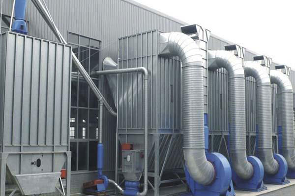 含尘粉尘由进风总管进入,经导流管进入各单元灰斗,在灰斗导流系统的引导下,大颗粒粉尘分离后直接落入灰斗、其余粉尘随气流进入中箱体过滤区,过滤后的洁净气体透过滤袋经上箱体、出风管排出。随着过滤工况的进行,当滤袋表面积尘达到一定量时,由PLC等控制系统按设定程序控制,打开电磁脉冲阀喷吹,抖落滤袋上的粉尘。落入灰斗中的粉尘经卸灰阀等输灰设备送出。